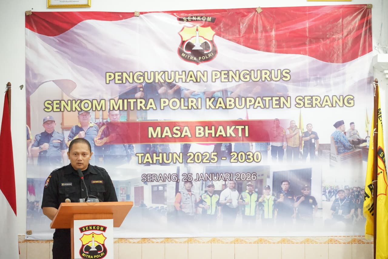Serang (26/1) – Organisasi kemasyarakatan Sentra Komunikasi (Senkom) Mitra Polri Kabupaten Serang resmi melantik kepengurusan baru untuk masa bakti 2025–2030. Prosesi pelantikan berlangsung khidmat di Kp. Pasir Nangka, RT./RW/RW.13/04, Sentul, Kec. Kragilan, Kabupaten Serang, Banten, Minggu (25/1/2026).