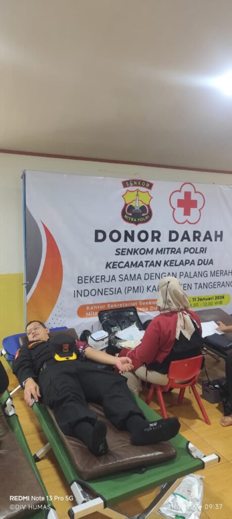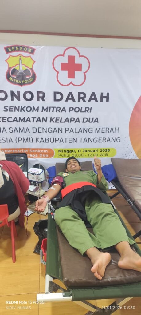 KEGIATAN Pertemuan dan Bakti Sosial Donor Darah Minggu, 11 Januari 2026 Pukul 08.00 sd 12.00 WIB, LOKASI Kantor Sekretariat Senkom Mitra Polri, Kp. Cina, RT.03 RW.29, Kelurahan Bojong Nangka, Kecamatan Kelapa Dua, Kabupaten Tangerang.
